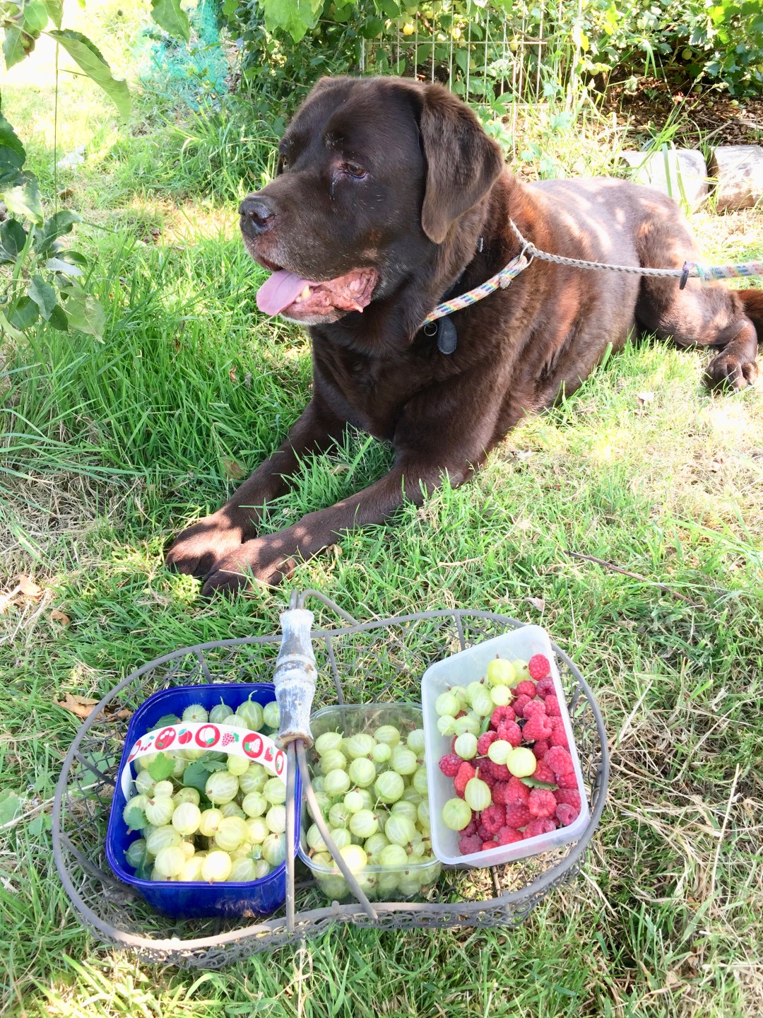Photo above shows Diane’s dog Ripley ‘helping’ to pick gooseberries and raspberries!