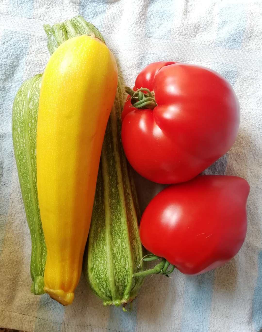 “Plenty of courgettes and tomatoes now so these will be turned into soup for the freezer. Something to cheer us on a cold winter’s day. Courgettes – Defender, Soleil, Romanesco. Tomatoes – Beefmaster, Coure Di Bue.”