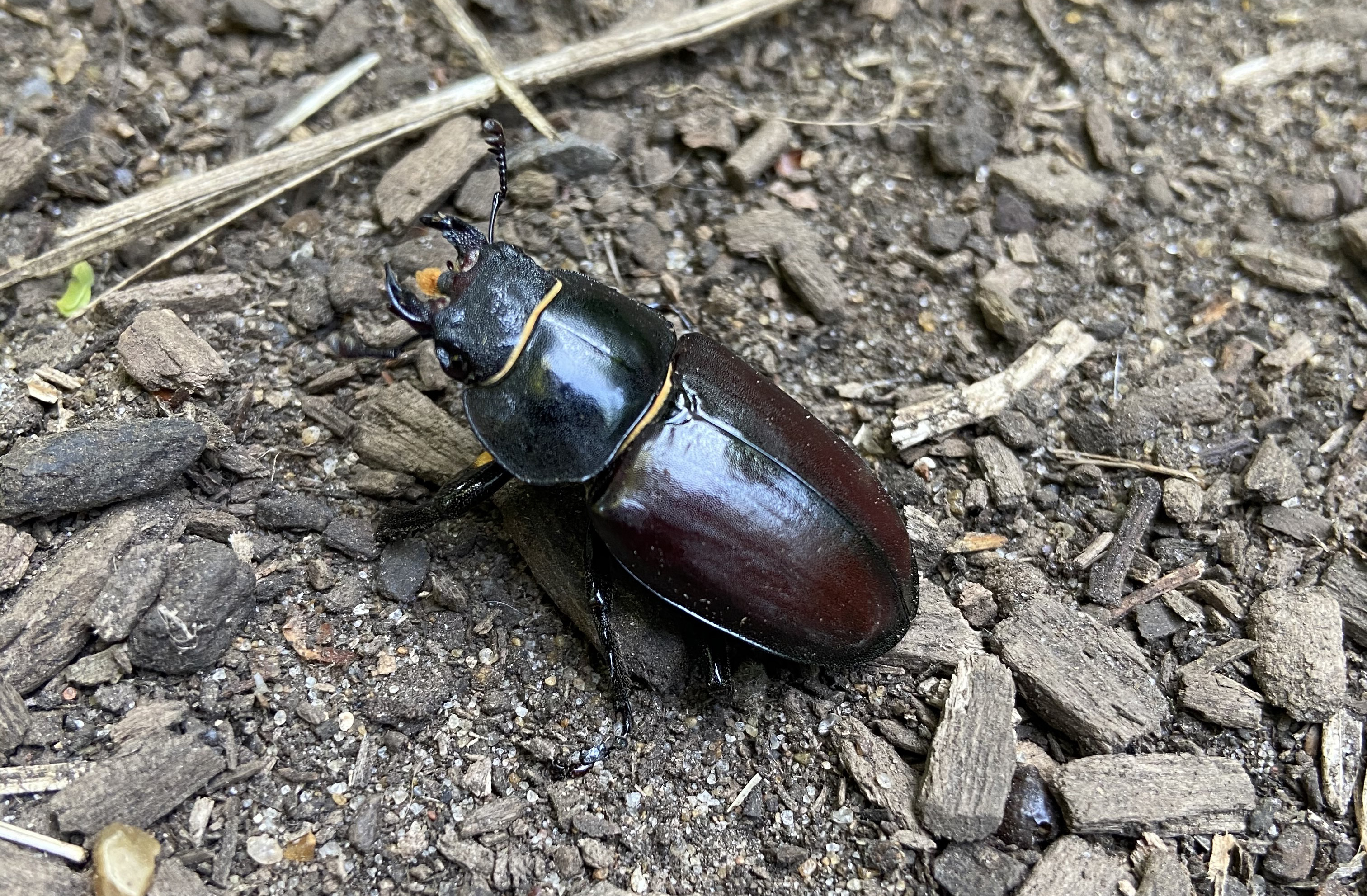 - weeded the mound of composted grass clippings, removing the non-native Spanish bluebells and several volunteer ash trees