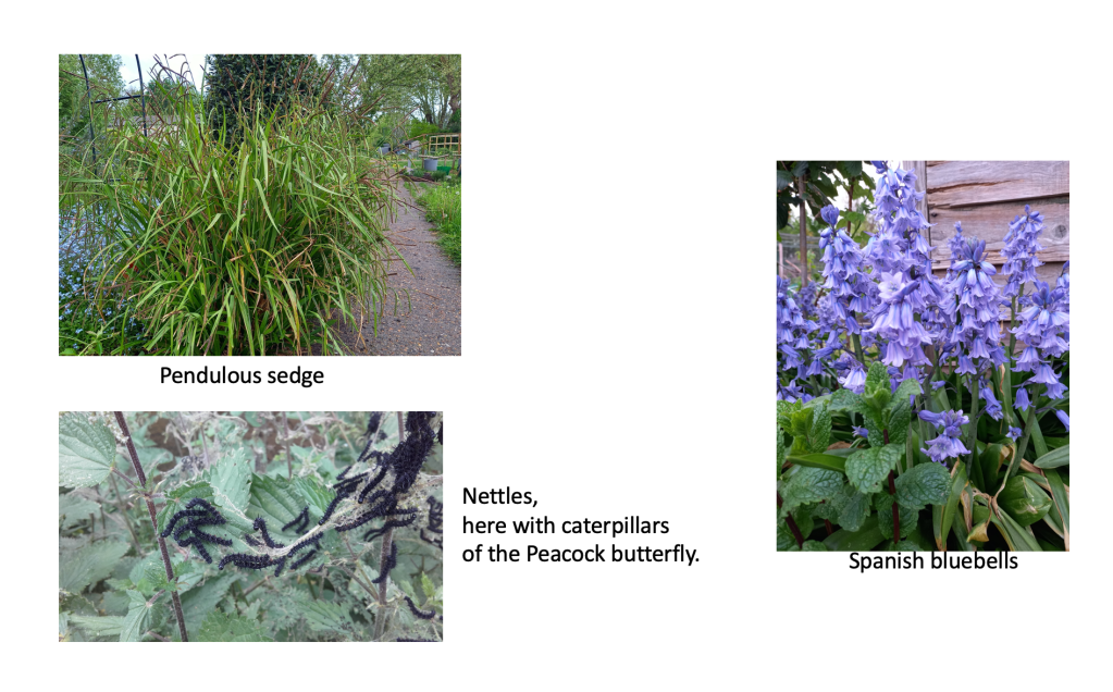 There are Spanish bluebells on our allotments and in local gardens. We can do our bit to help English bluebells by removing their Spanish cousins. It is best to dig out Spanish bluebells while they are in leaf, as the bulbs are almost impossible to find when the plants are dormant:
