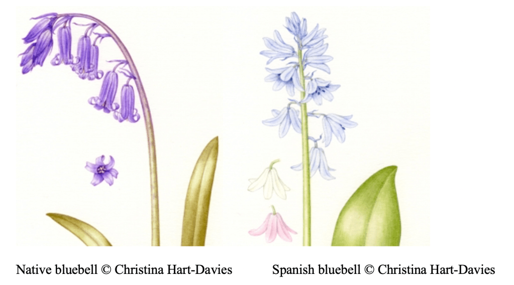How can I tell whether bluebells are native ones or Spanish ones?